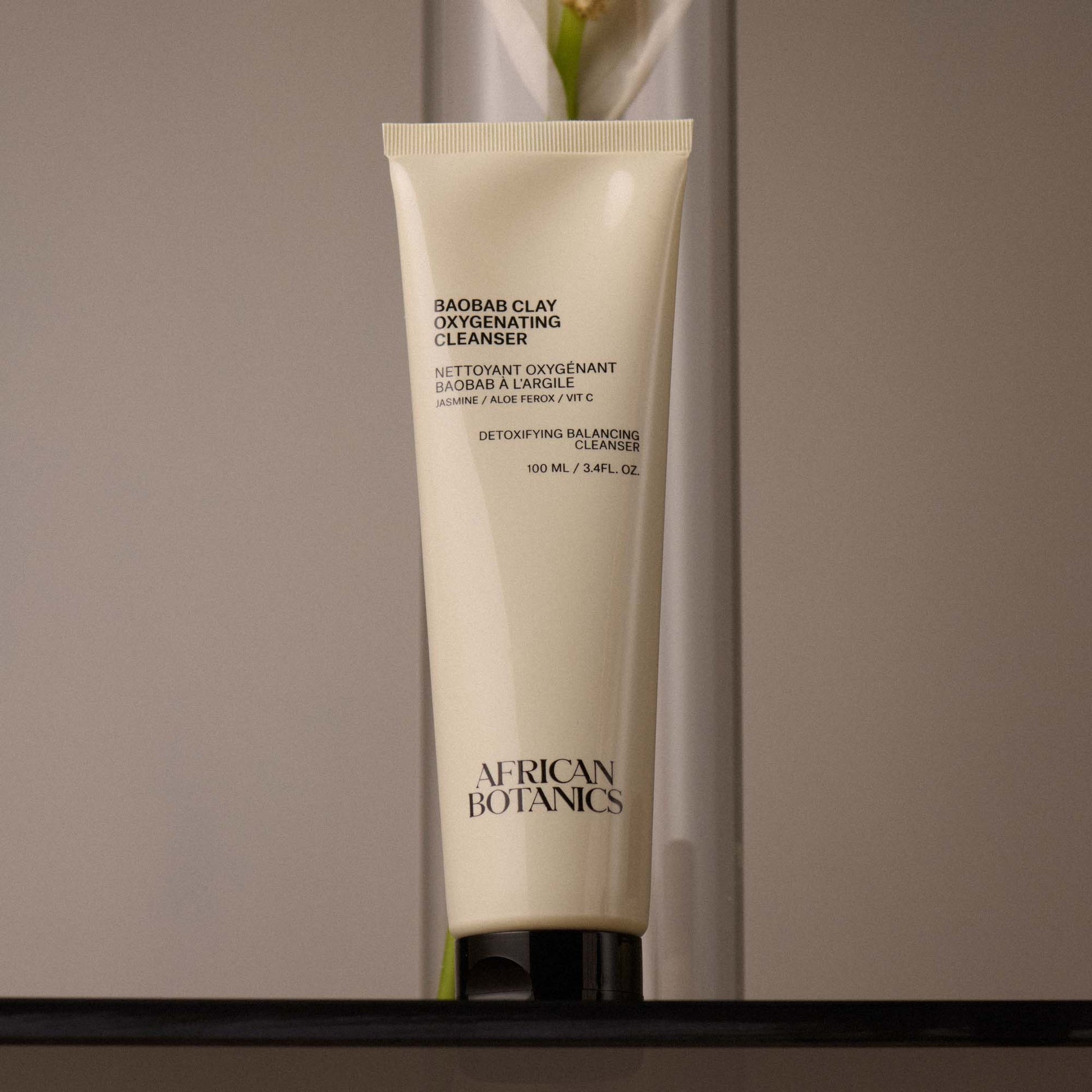 Leave Baobab Clay Oxygenating Cleanser on your face for up to one minute.
