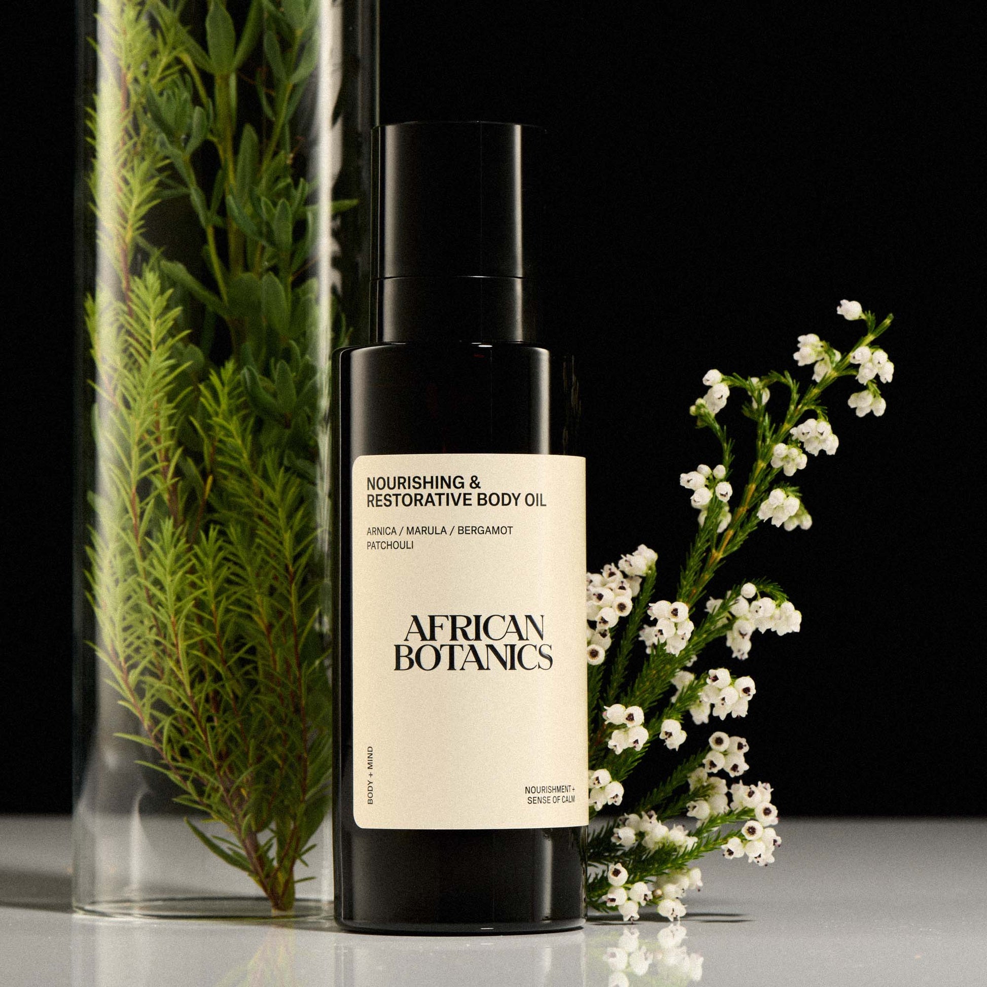 Vitis Vinifera (Grape) Seed Oil, Arnica Montana Flower Oil, Olea Europaea (Olive) Fruit Oil, Persea Gratissima (Avocado) Oil, Simmondsia Chinensis (Jojoba) Seed Oil, Rosa Canina Fruit Oil, Sclerocarya Birrea (Marula) Seed Oil, Caprylic/Capric Triglyceride, Tocopherol, Schinziophyton Rautanenii Seed Oil, Camellia Japonica Seed Oil, Citrullus Lanatus (Kalahari Melon) Seed Oil, Adansonia Digitata (Baobab) Seed Oil, Citrus Aurantium Bergamia (Bergamot) Peel Oil, Pogostemon Cablin Oil, Salvia Sclarea (Clary Sage) Oil, Lavandula Angustifolia Oil (Lavender), Myroxylon Pereirae (Balsam Peru) Oil, Chamomilla Recutita (Matricaria) Flower Oil. Contains ethically and responsibly sourced ingredients. Vegan & Cruelty Free.