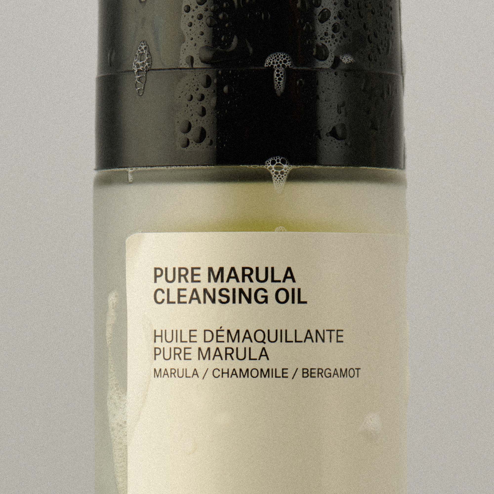 New Formula! Pure Marula Cleansing Oil - deeply cleanses, dissolves make-up, pollution, surface impurities, skin congestion and SPF without causing irritation or skin dehydration whilst maintaining skin’s natural protective barrier.