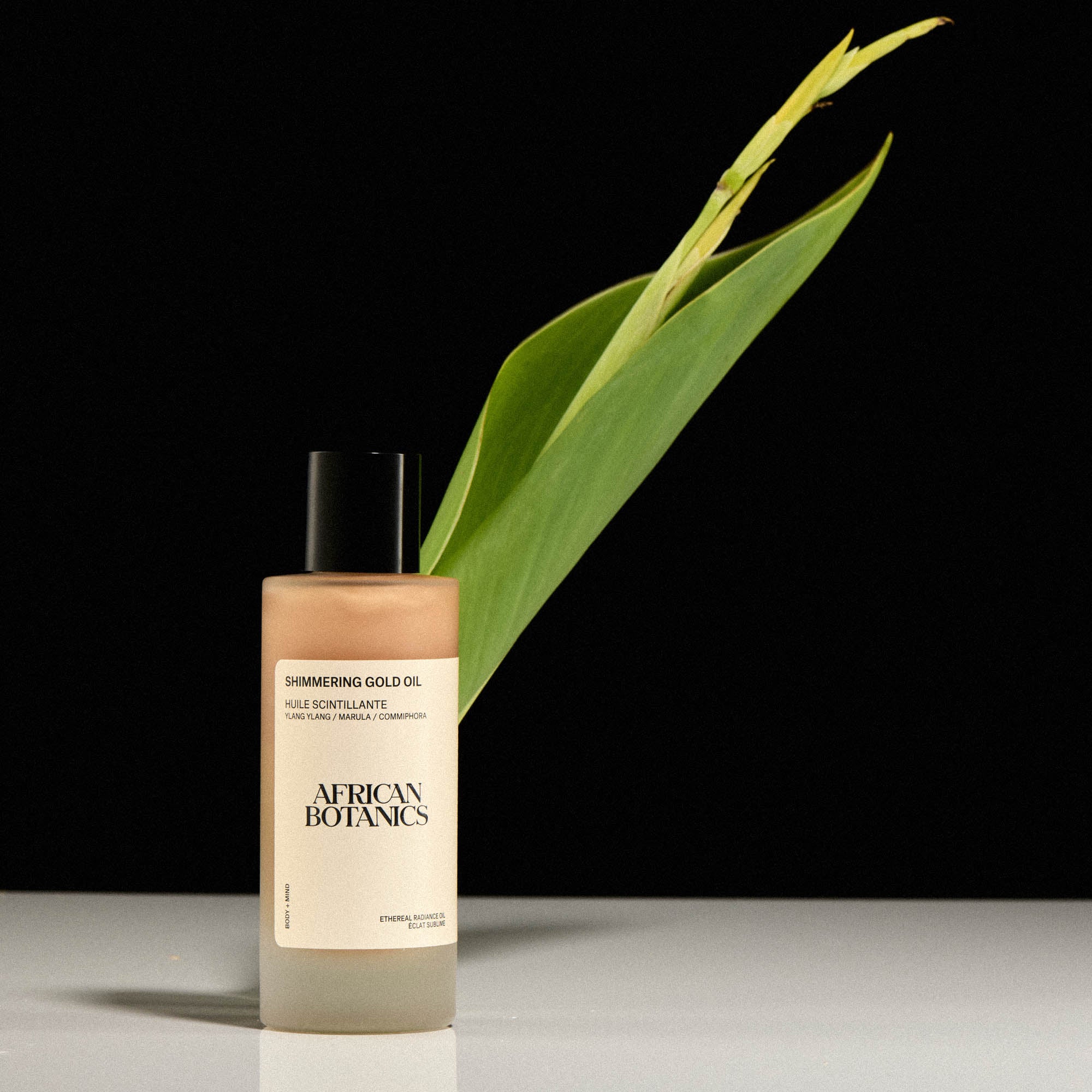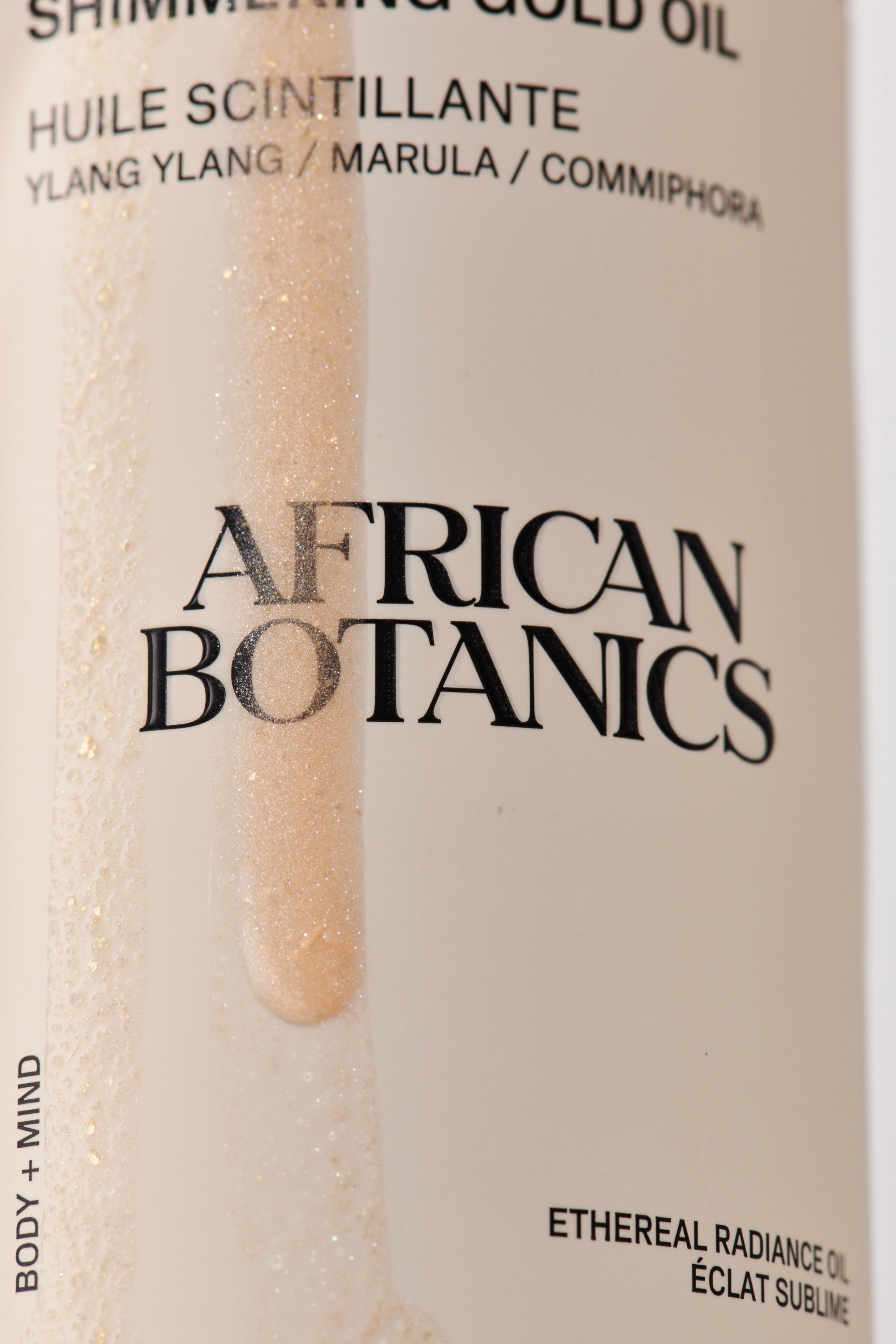 African Botanics Shimmering Gold Oil is a luxurious fluid oil infused with golden particles. These shimmering particles add a natural-looking shimmer to enhance your features, create a subtle glow on your skin and add shine to your hair. Upon application, the golden particles distribute evenly, creating a beautiful sun-kissed effect that will leave you looking radiant.